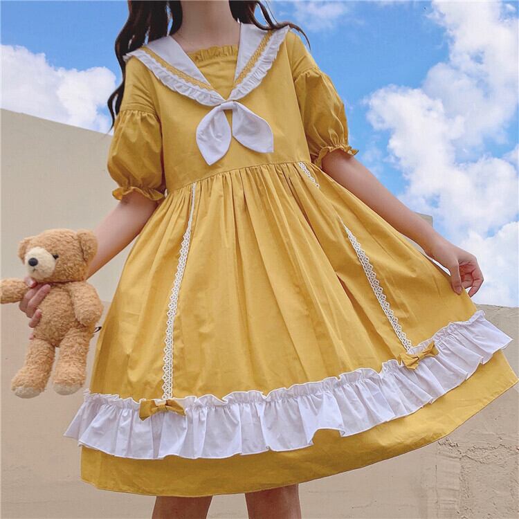 ネイビー 紺色スタイルリボンカラーハイウエストウエストドレス ワンピース ハイウェスト かわいい 可愛い ガーリー 大人可愛い 大人かわいい フェミニン 大人ガーリー 女性 レディース ゆめかわ5192696 | nice import1