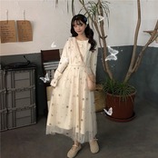 スカート スリーブ 袖ラウンドネックメッシュ レース シースルー チュール オーガンジーロング マキシ ロング丈 マキシ丈ドレス ワンピース マキシロング丈 かわいい 可愛い ガーリー 大人可愛い 大人かわいい フェミニン 大人ガーリー ステッチ 女性 レディース ゆめかわ1594375 | nice import1