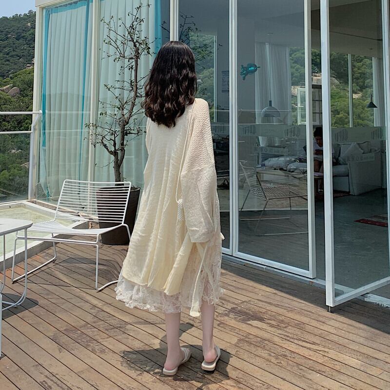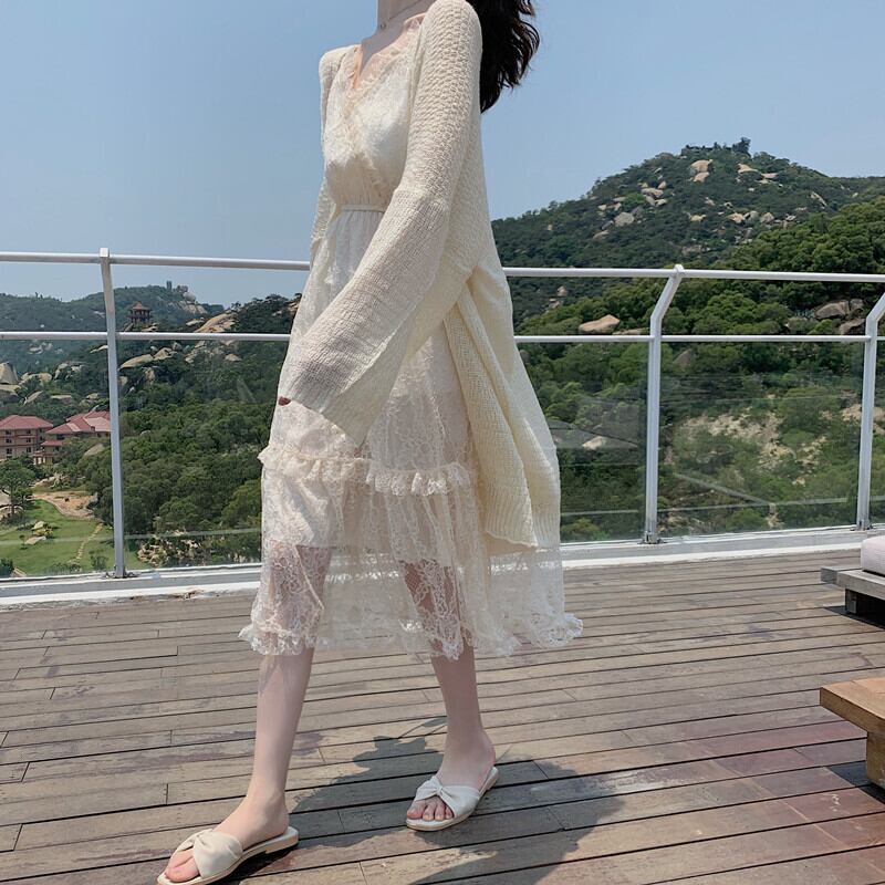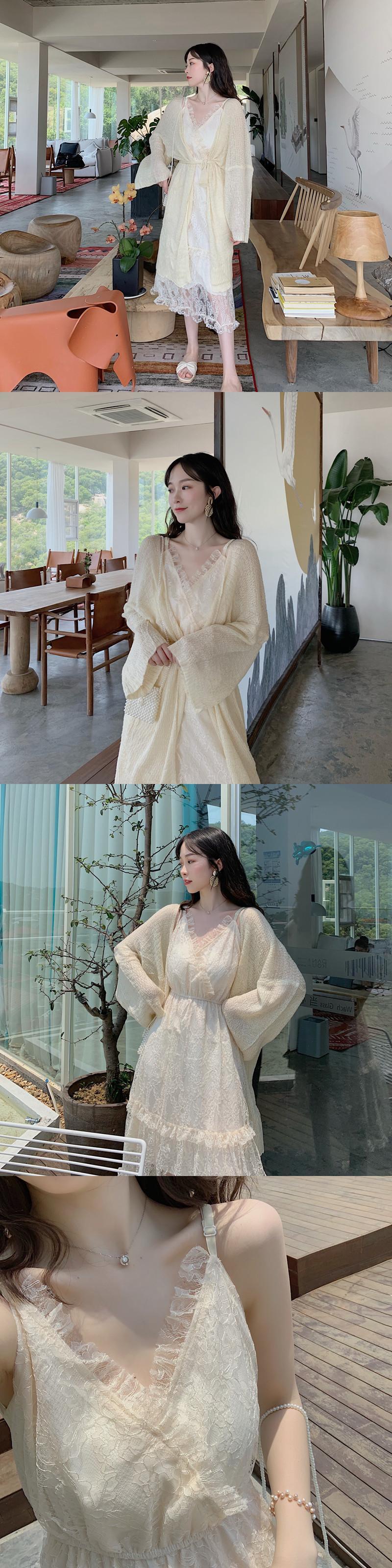 色:レースワンピースワンピース,ニットカーディガン