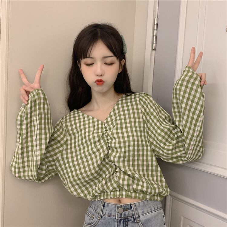 ショート ショート丈 ミニ ミニ丈トップス レディース格子柄 チェックVネックシャツ ロング マキシロング丈 マキシ丈 ゆめかわ0824710