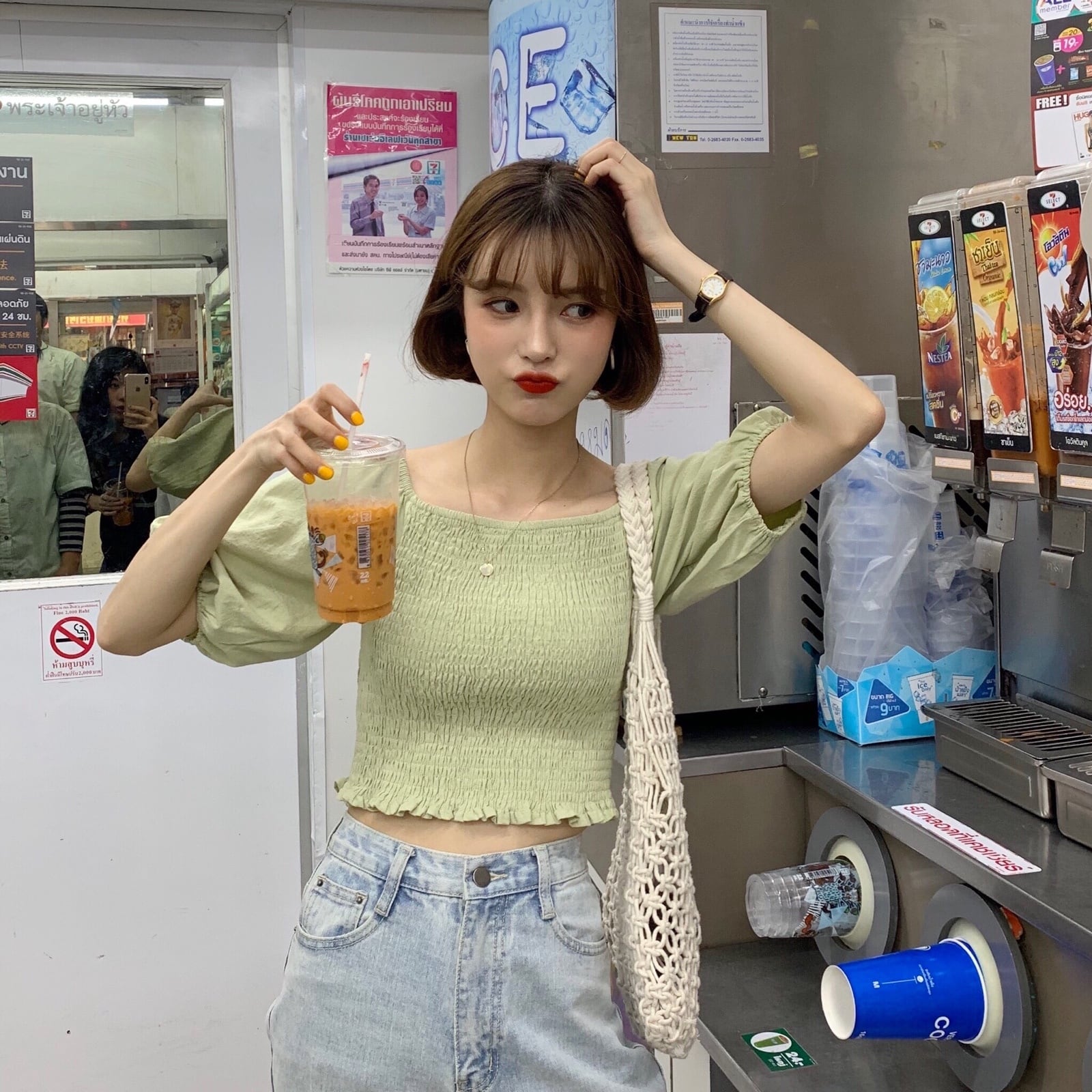 プリーツソリッド カラーショート ショート丈 ミニ ミニ丈シャツ トップス レディース かわいい 可愛い ガーリー 大人可愛い 大人かわいい フェミニン 大人ガーリー ソリッドカラー スクウェア スクエア 女性 レディース ゆめかわ5654458 | nice import1