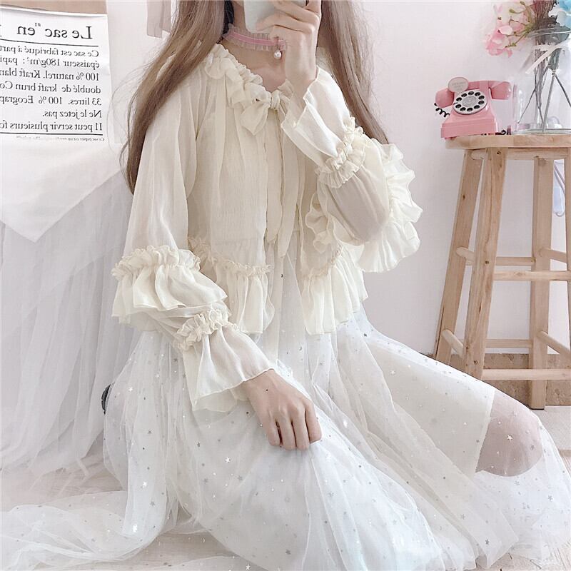 シフォンカーディガン 上着ショート ショート丈 ミニ ミニ丈シャツ ジャケット 上着 コート薄手トップス かわいい 可愛い ガーリー 大人可愛い 大人かわいい フェミニン 大人ガーリー 女性 レディース ゆめかわ0315727 | nice import1