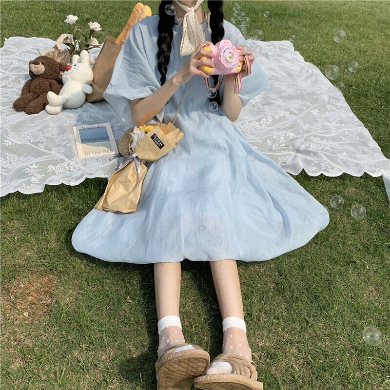 ラウンドネックメッシュ レース シースルー チュール オーガンジースリーブ 袖ウエスト薄手ソリッド カラードレス ワンピース かわいい 可愛い ガーリー 大人可愛い 大人かわいい フェミニン 大人ガーリー ソリッドカラー ゆめかわ6992104 | nice import1