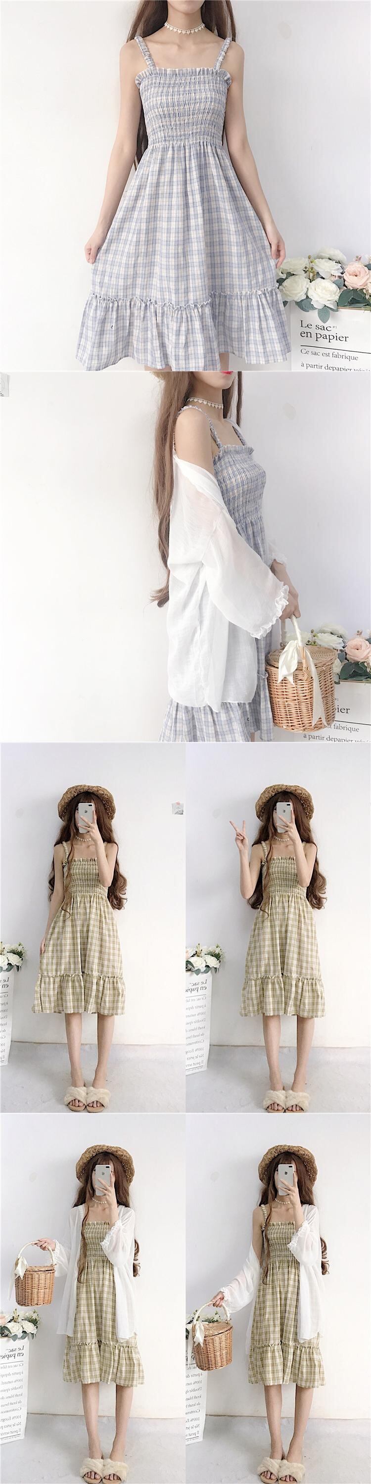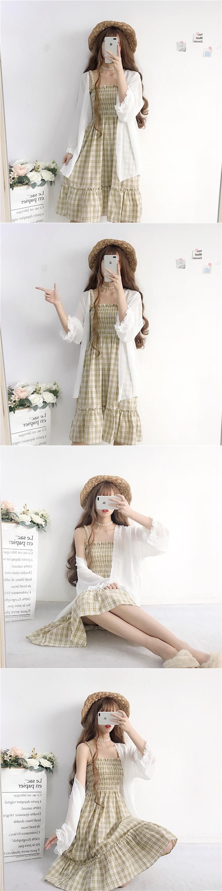 色:ブルーチェック柄スカートワンピース,イエローチェック柄ワンピース,日焼け止め服