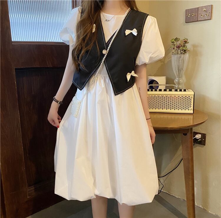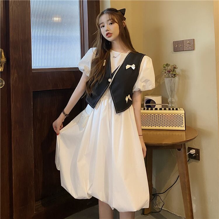 ブラック 黒スタイルドレス ワンピース薄手スリーブ 袖ホワイト 白スカート かわいい 可愛い ガーリー 大人可愛い 大人かわいい フェミニン 大人ガーリー ゆめかわ5667784 | nice import1