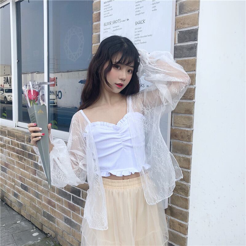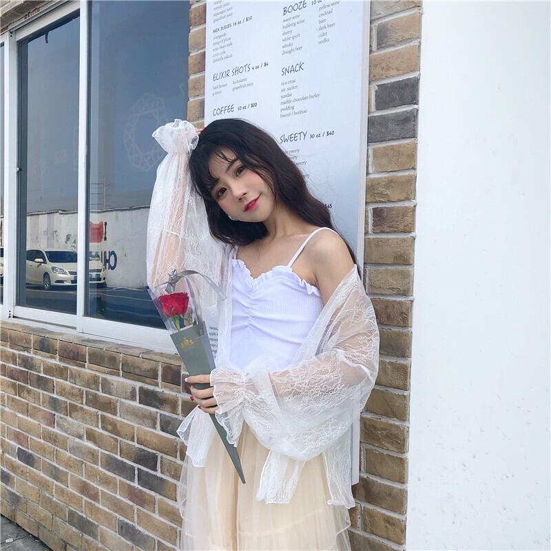 ホワイト 白シフォンレースメッシュ レース シースルー チュール オーガンジーショート ショート丈 ミニ ミニ丈カーディガン 上着シャツ コート 薄手トップス 女性 レディース ゆめかわ8624017 | nice import1