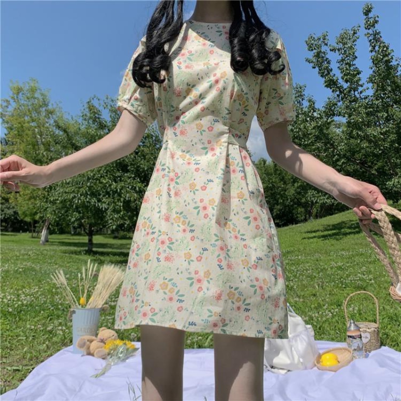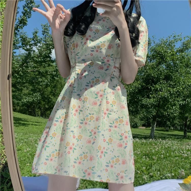 ドレス ワンピーススタンダードスリーブ 袖花柄 お花 フラワースカート レトロ かわいい 可愛い ガーリー 大人可愛い 大人かわいい フェミニン 大人ガーリー ゆめかわ1159523 | nice import1