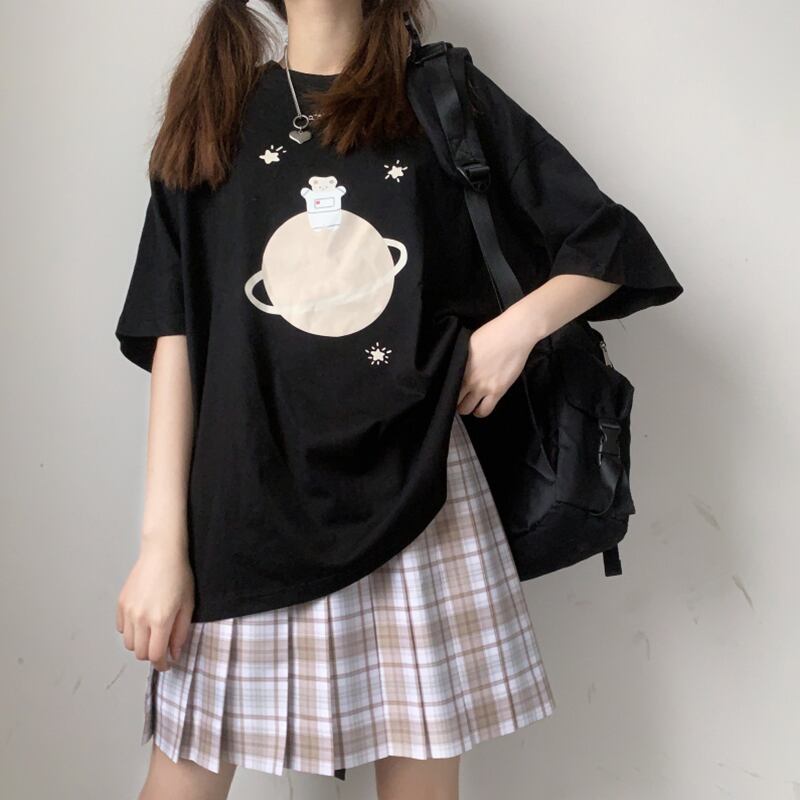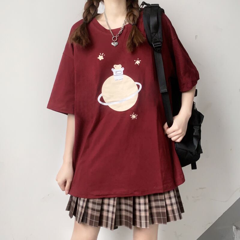 ラウンドネックプルオーバー プリント柄Tシャツ ショート ショート丈 ミニ ミニ丈 かわいい 可愛い ガーリー 大人可愛い 大人かわいい フェミニン 大人ガーリー ゆめかわ3657179 | nice import1