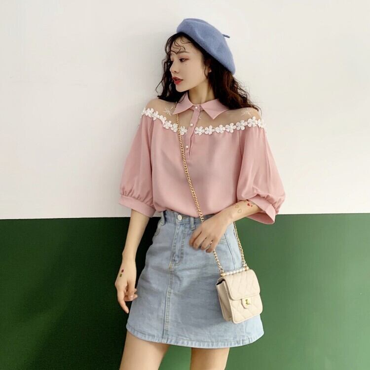 シャツ メッシュ レース シースルー チュール オーガンジー かわいい 可愛い ガーリー 大人可愛い 大人かわいい フェミニン 大人ガーリー ステッチ 女性 レディース ゆめかわ8470959 | nice import1