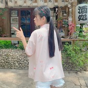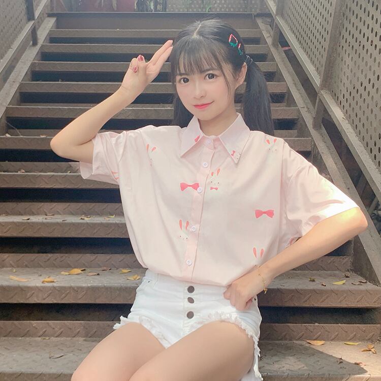ルーズカラープリント柄半袖 半そでスリーブ 袖シャツ ショート ショート丈 ミニ ミニ丈 ハーフスリーブ かわいい 可愛い ガーリー 大人可愛い 大人かわいい フェミニン 大人ガーリー ゆめかわ7889205 | nice import1