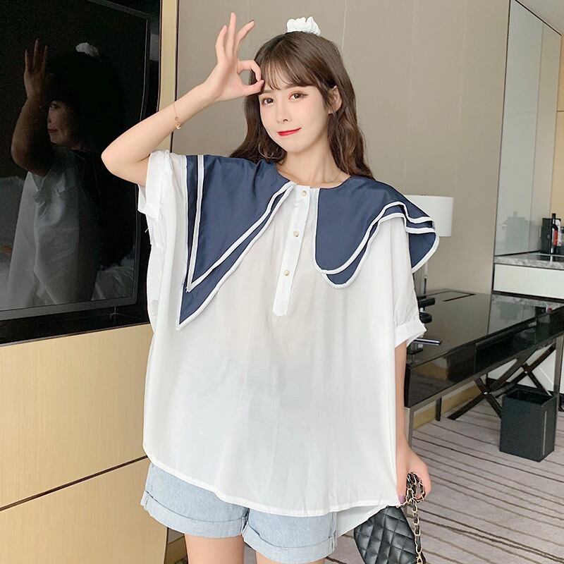 スリーブ 袖ルーズ薄手カラーシャツ レディース ショート ショート丈 ミニ ミニ丈 かわいい 可愛い ガーリー 大人可愛い 大人かわいい フェミニン 大人ガーリー ステッチ ゆめかわ0523023 | nice import1