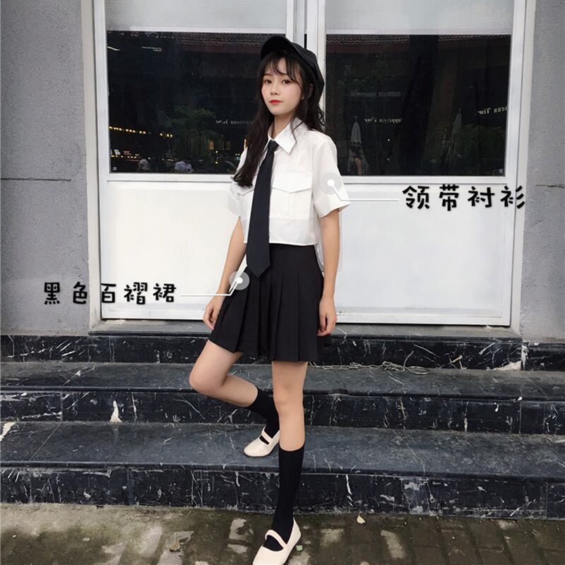 色:白シャツ+ネクタイワンピース,ブラックスカートワンピース