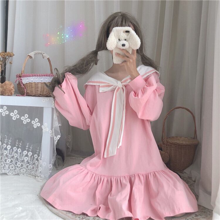 ドレス ワンピースネイビー 紺色カラーリボンレーススリーブ 袖ラッフル フリル ランタンスリーブ バルーンスリーブ ランタン袖 バルーン袖 女性 レディース ゆめかわ8802745 | nice import1