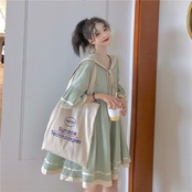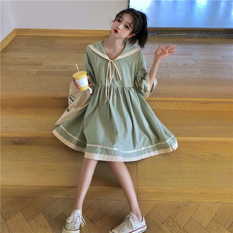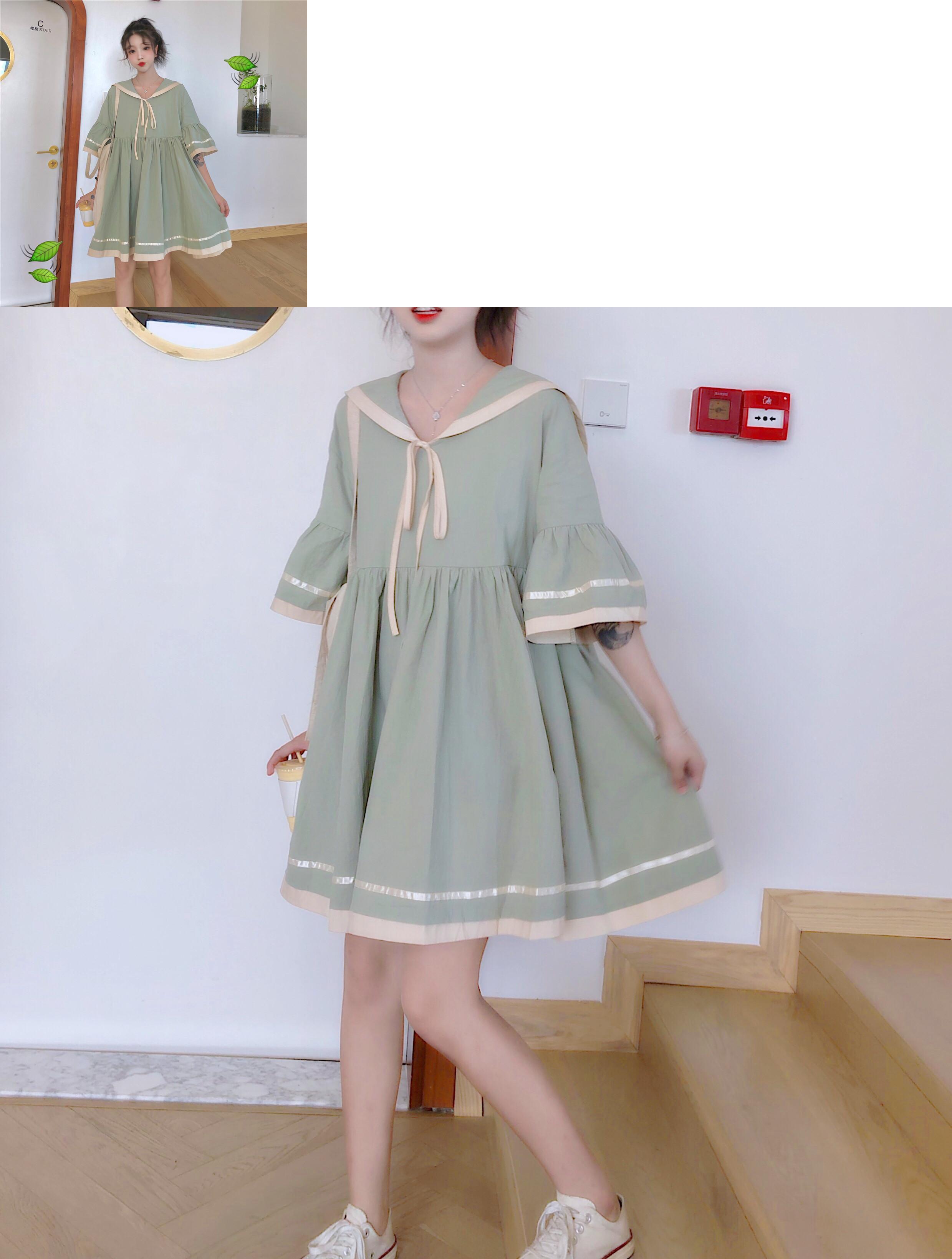 スカート スタイルネイビー 紺色カラースリーブ 袖ドレス ワンピース レッド 赤 リボン かわいい 可愛い ガーリー 大人可愛い 大人かわいい フェミニン 大人ガーリー ゆめかわ9421861 | nice import1