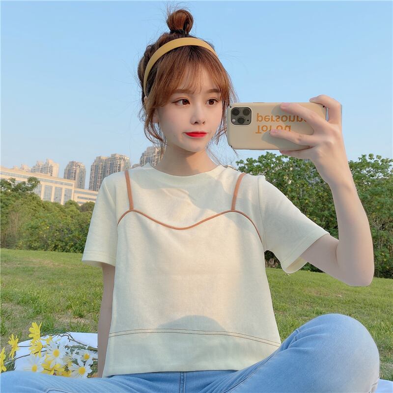 ソリッド カラーTシャツ トップス レディース ショート ショート丈 ミニ ミニ丈 ソリッドカラー 女性 レディース ゆめかわ15929858991