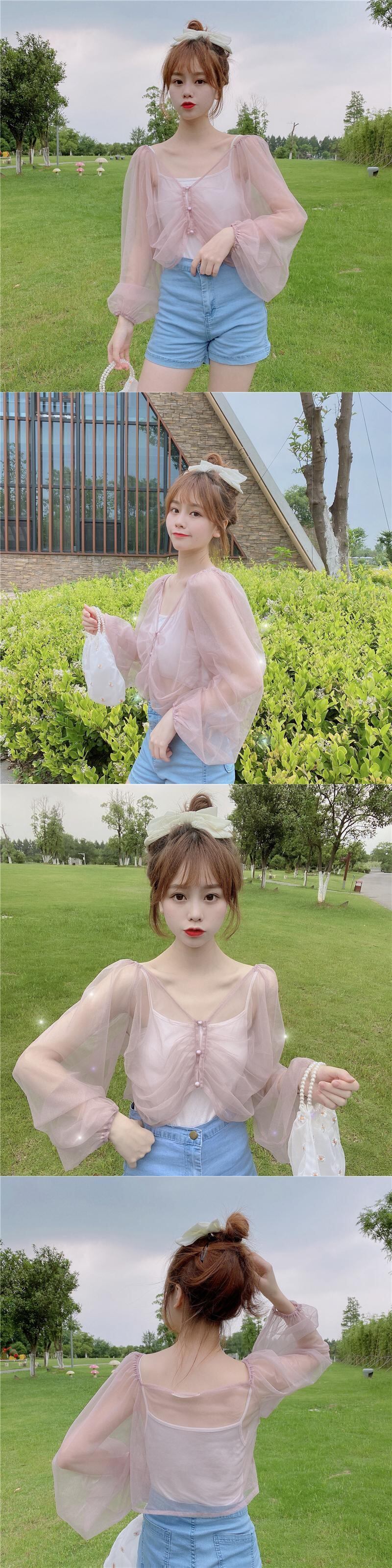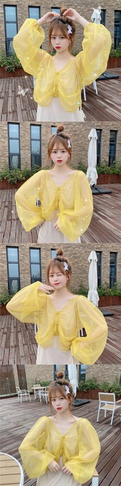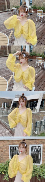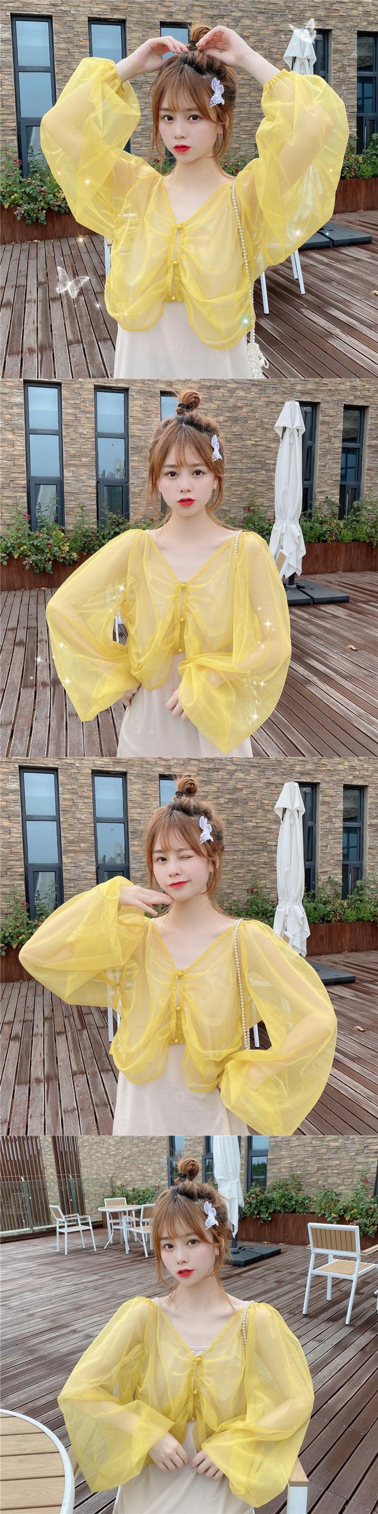 ルーズVネック薄手ソリッド カラーシフォンカーディガン 上着ショート ショート丈 ミニ ミニ丈トップス レディース ロング マキシロング丈 マキシ丈 ソリッドカラー 女性 レディース ゆめかわ39604812228 | nice import1