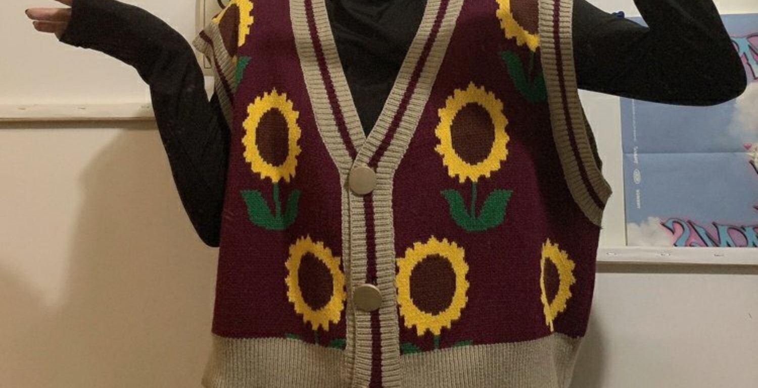 色:黒ひまわりベスト,ブルゴーニュヒマワリベストワンピース,ホワイトボトミングシャツ,黒底シャツ