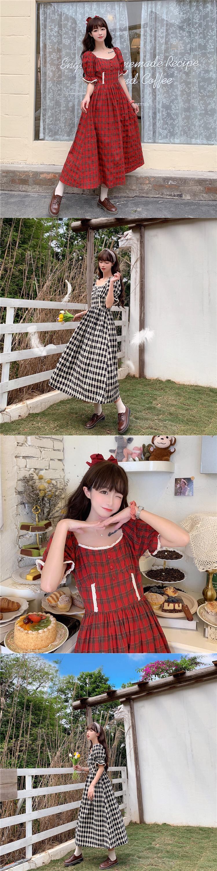 レーススリーブ 袖スタンダード格子柄 チェックハイウエストウエストドレス ワンピース ハイウェスト レトロ かわいい 可愛い ガーリー 大人可愛い 大人かわいい フェミニン 大人ガーリー スクウェア スクエア ステッチ 女性 レディース ゆめかわ29440339208 | nice import1