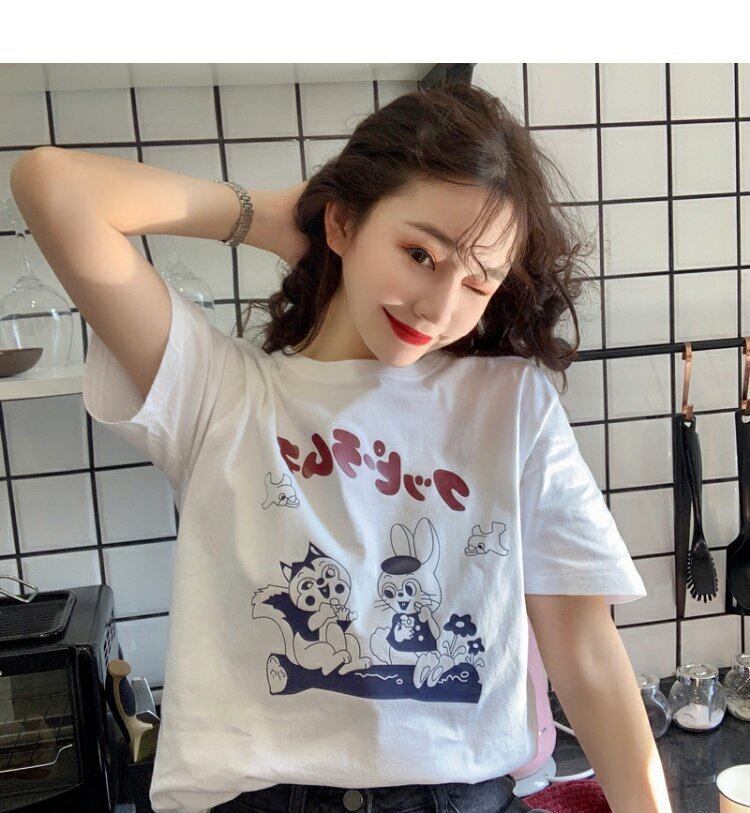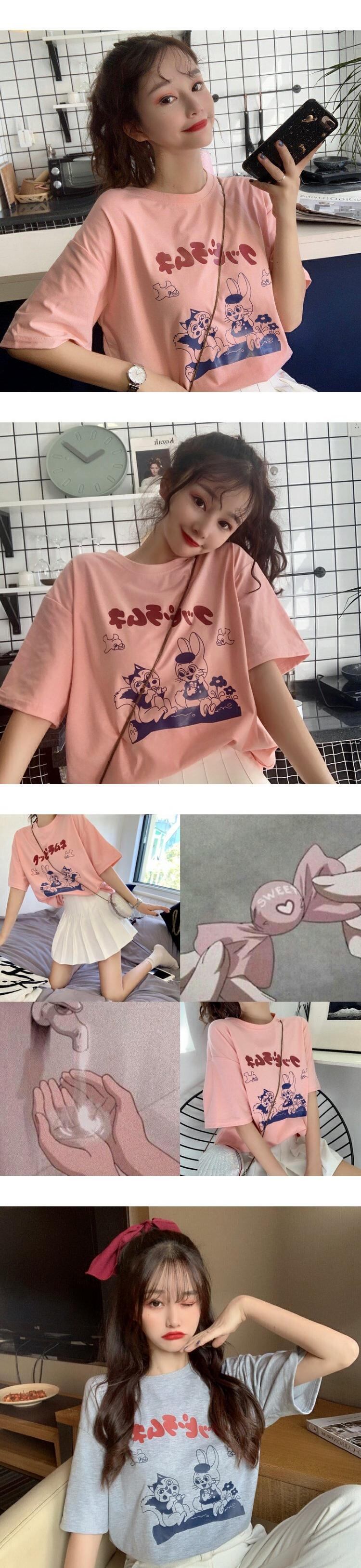 半袖 半そでスリーブ 袖ルーズプリント柄ラウンドネックTシャツ シャツ ブラウス ショート ショート丈 ミニ ミニ丈 ハーフスリーブ トップス 女性 レディース ガーリー99923691999 | nice import1