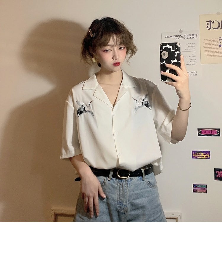 色:白鶴シャツ,ブラウンクレーンシャツ,黒鶴シャツ