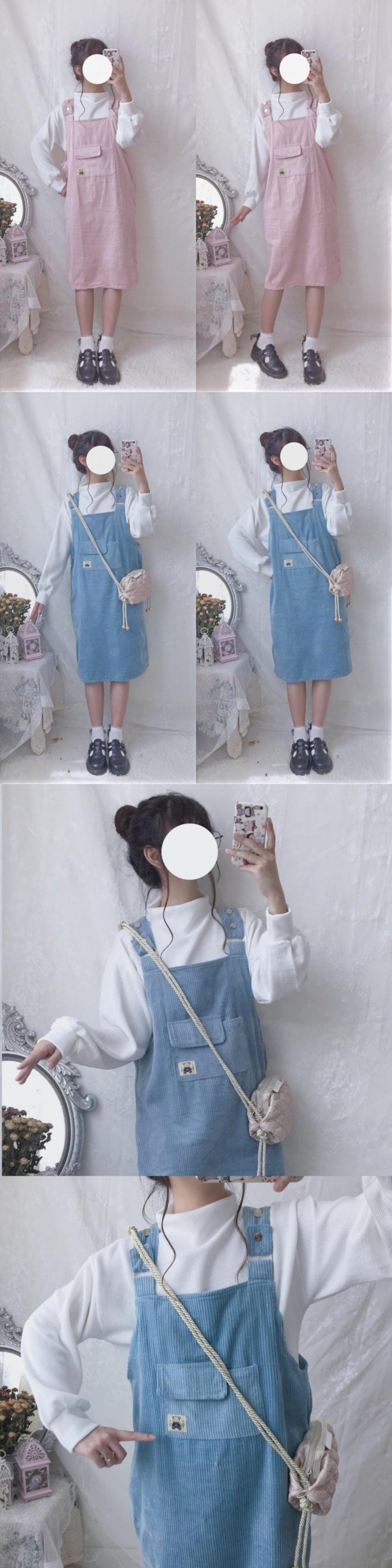 色:ホワイトトップ,ブルートップ,味噌パウダートップ,ブルーストラップスカート,ピンクのストラップドレス