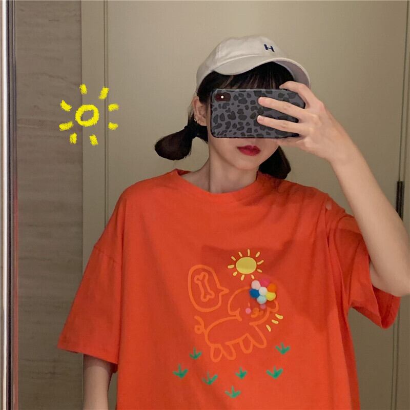 Tシャツ プリント柄トップス レッド 赤ルーズ薄手 ショート ショート丈 ミニ ミニ丈 かわいい 可愛い ガーリー 大人可愛い 大人かわいい フェミニン 大人ガーリー 女性 レディース ガーリー95898369589 | nice import1