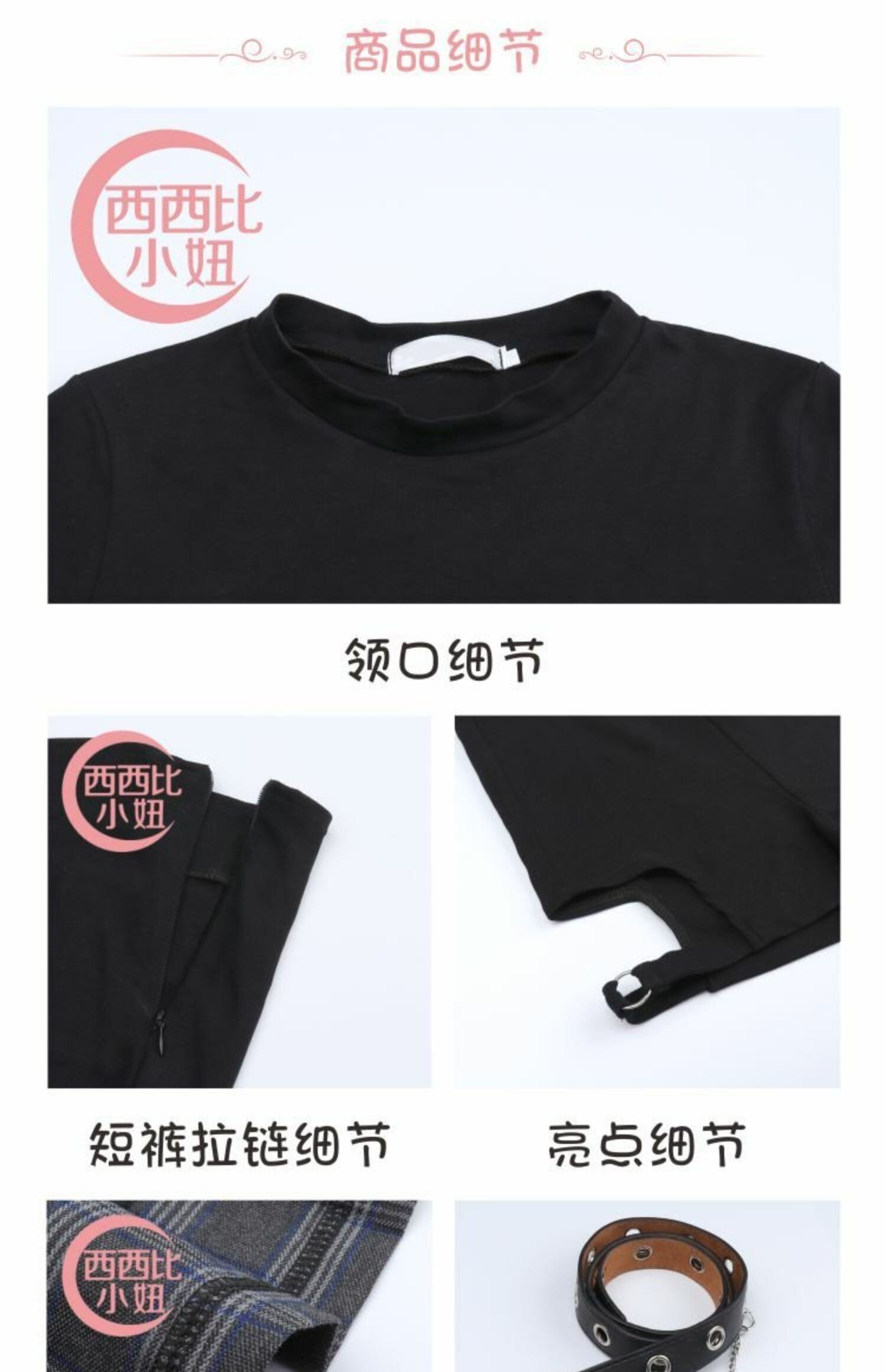色:黒のTシャツシングルピース,ワンピーススカート,ショートパンツ,ベルト単品