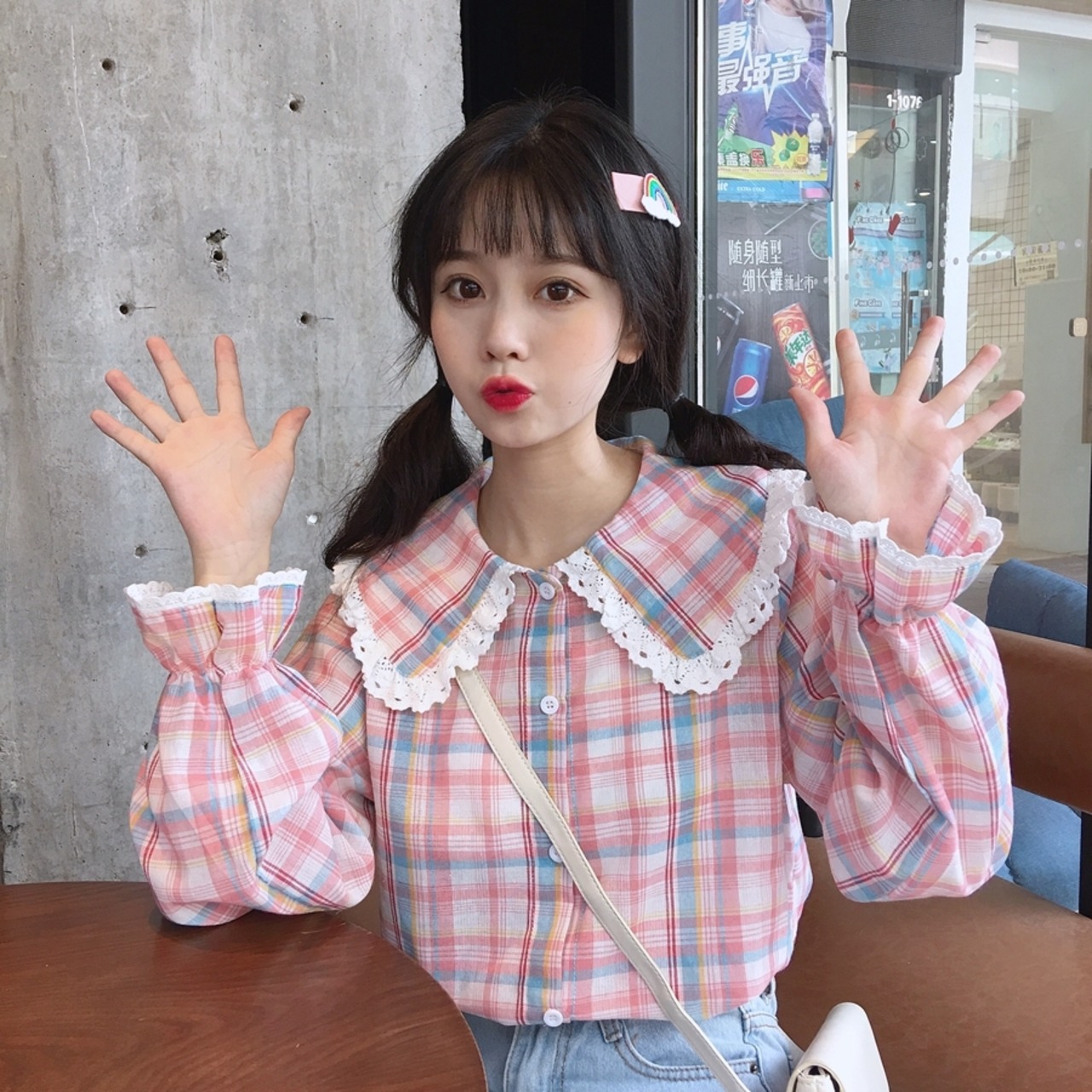 色:ピンクの格子縞