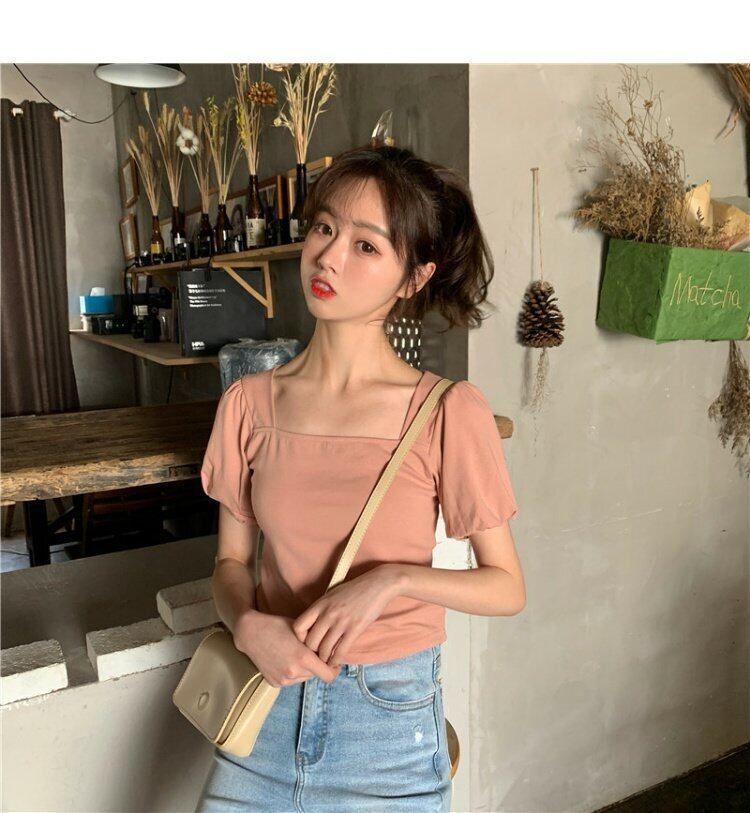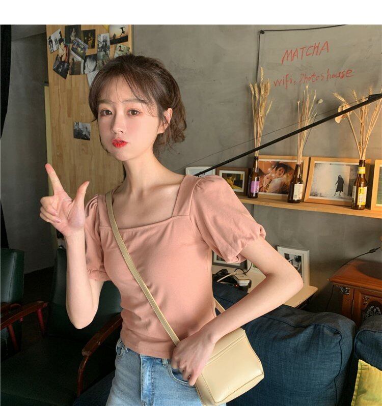 カラートップス ソリッド Tシャツ スタイルスリーブ 袖半袖 半そで ショート ショート丈 ミニ ミニ丈 ハーフスリーブ ソリッドカラー スクウェア スクエア 女性 レディース ガーリー70057579747 | nice import1