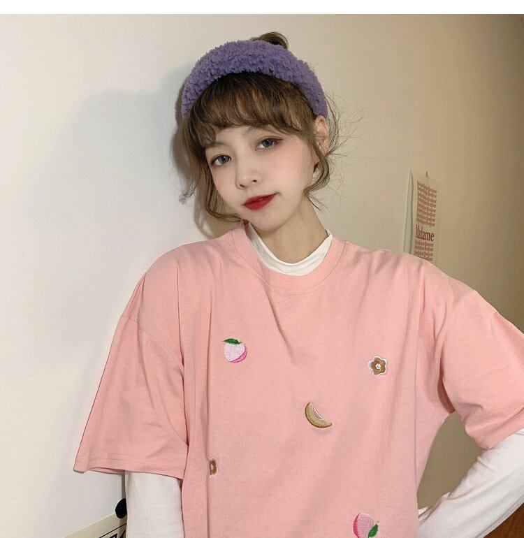 色:ピンクピーチ刺繍半袖/シングルピース,白いアンダーシャツ/シングルピース