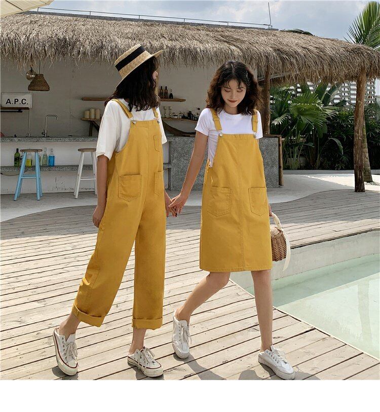 色:3828#黄色のオーバーオール,3828#黒のオーバーオール,3829#ブラックストラップスカート,3829#黄色のストラップスカート