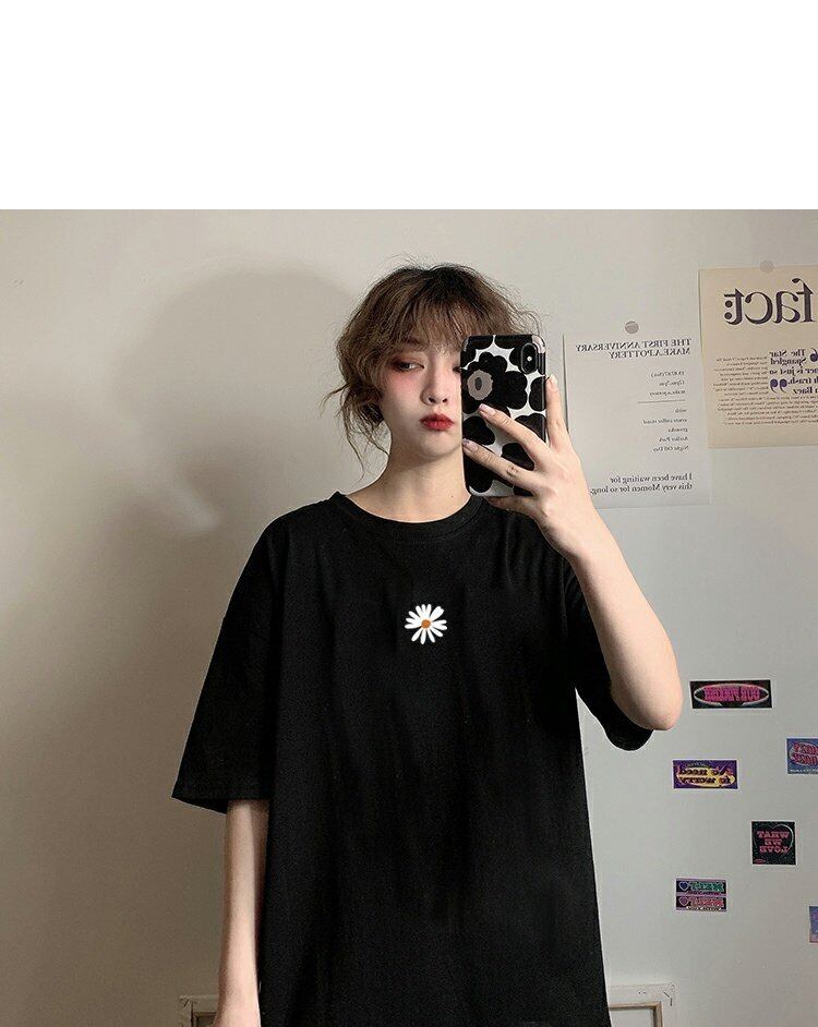 ブラック 黒Tシャツ ルーズラウンドネックプリント柄半袖 半そでスリーブ 袖トップス ショート ショート丈 ミニ ミニ丈 ハーフスリーブ 女性 レディース ガーリー82871604678 | nice import1