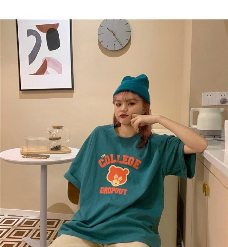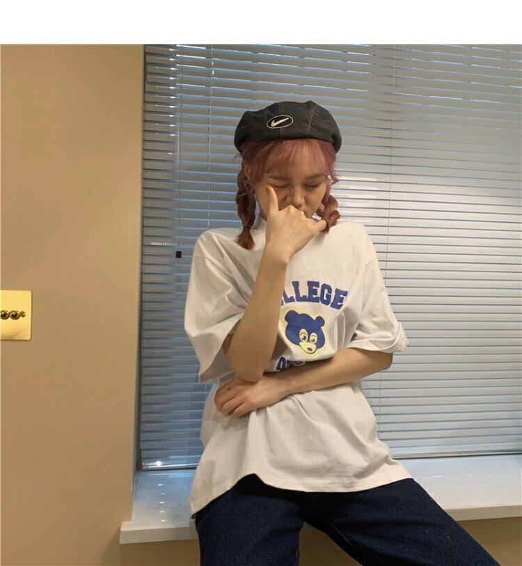 Tシャツ シャツ レディースルーズプリント柄ラウンドネック半袖 半そでスリーブ 袖 ショート ショート丈 ミニ ミニ丈 ハーフスリーブ 女性 レディース ガーリー89677405687 | nice import1