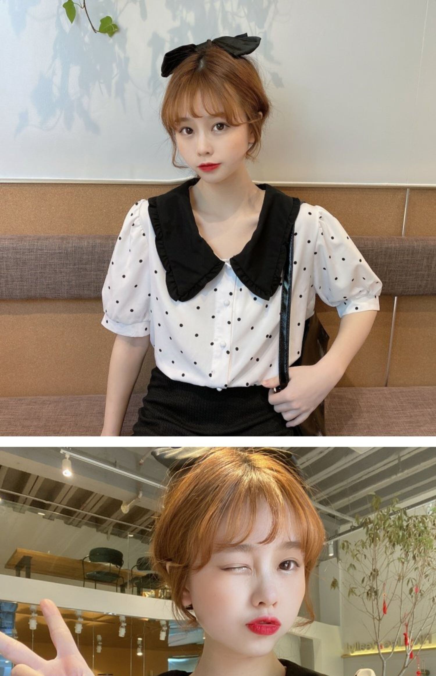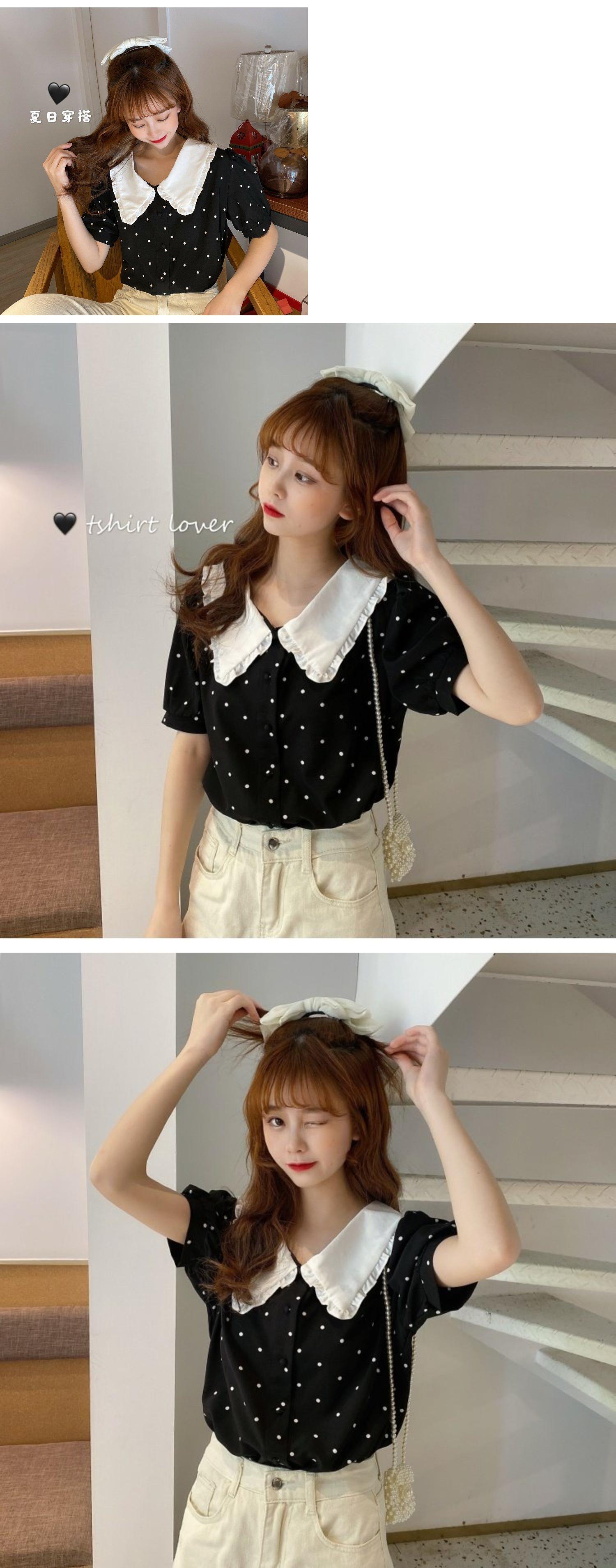 ブラック 黒シャツ カラー水玉 ドット半袖 半そでスリーブ 袖トップス ショート ショート丈 ミニ ミニ丈 ハーフスリーブ かわいい 可愛い ガーリー 大人可愛い 大人かわいい フェミニン 大人ガーリー 女性 レディース ガーリー49873211192 | nice import1