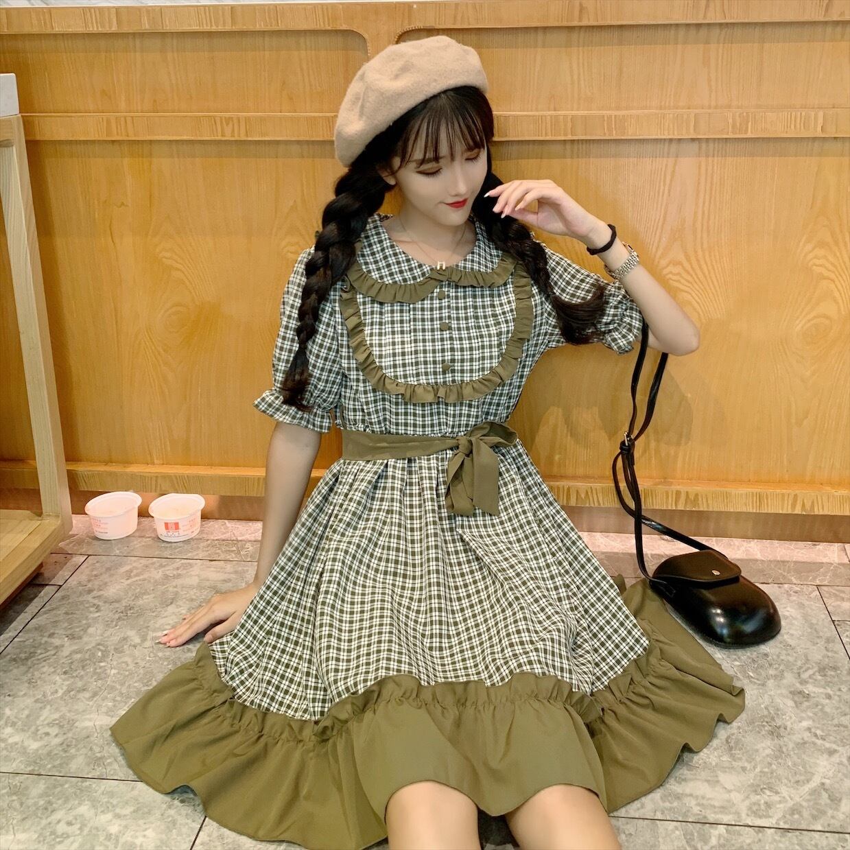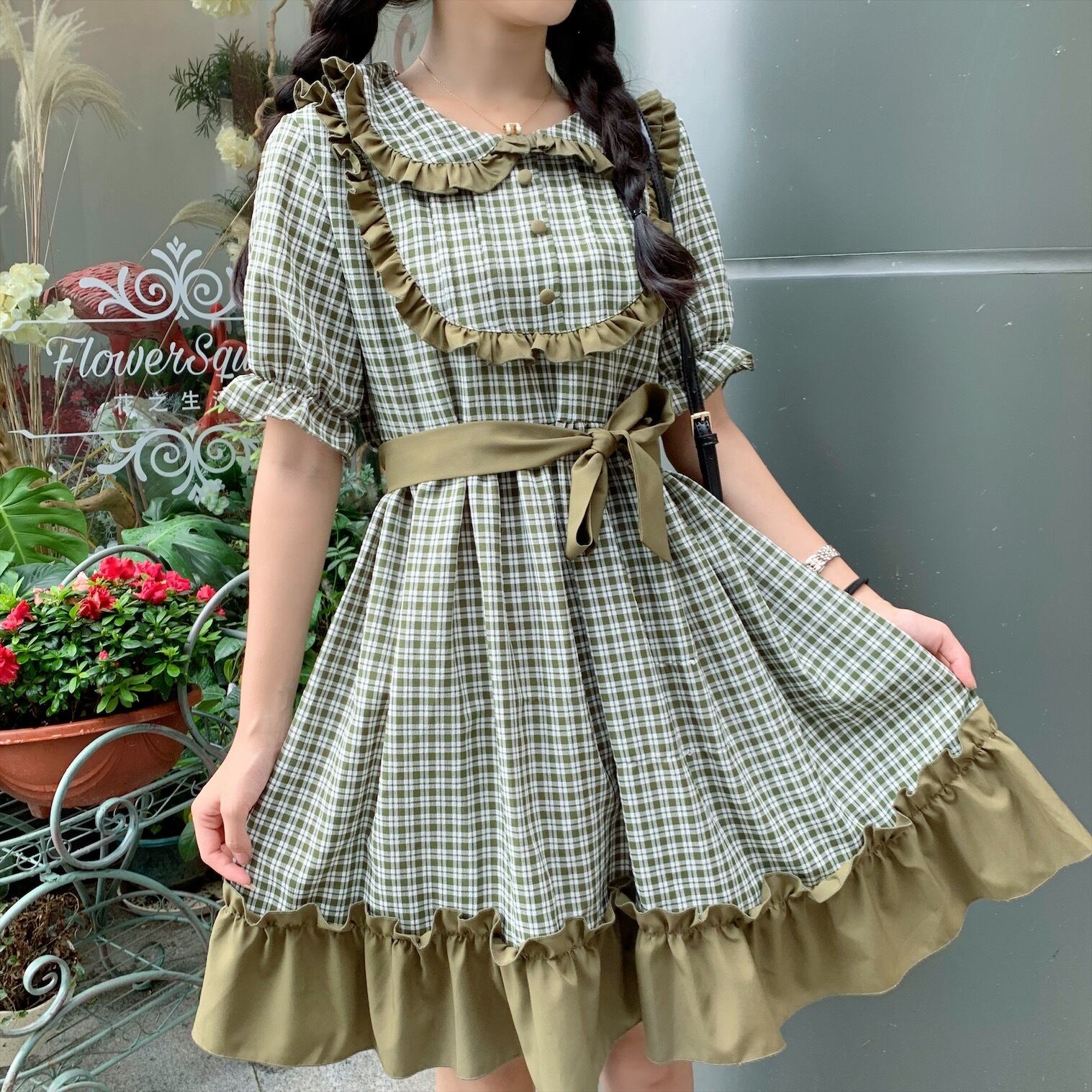 グリーン 緑格子柄 チェックレースドレス ワンピースレディーススタイルスカート ショート ショート丈 ミニ ミニ丈 ステッチ 女性 レディース ゆめかわ29704347112 | nice import1