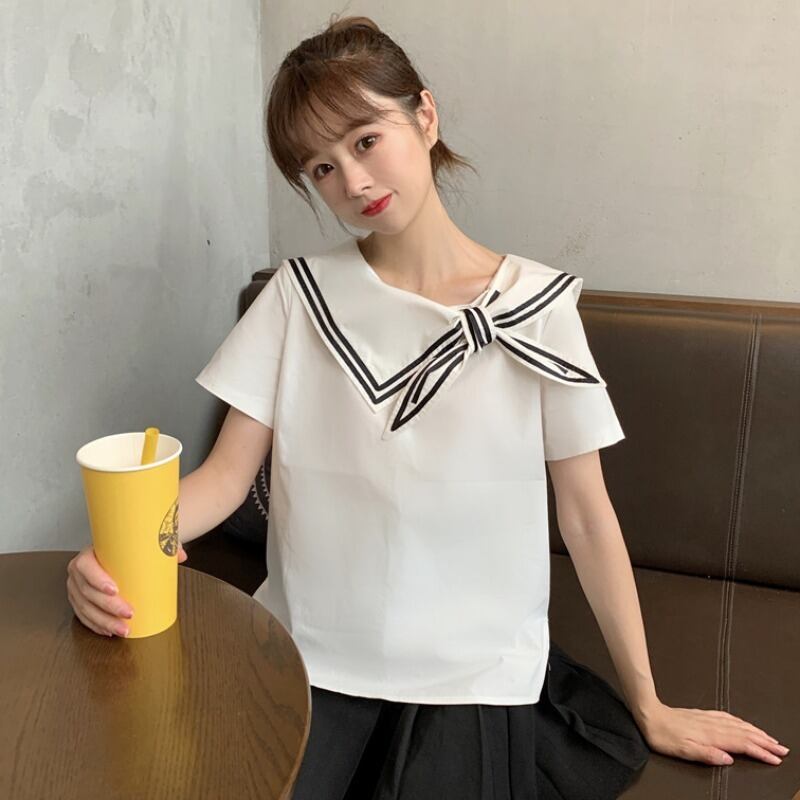 スタイルルーズネイビー 紺色カラーリボンシャツ スリットブラウス レディース ショート ショート丈 ミニ ミニ丈 トップス 女性 レディース ガーリー96267991534 | nice import1