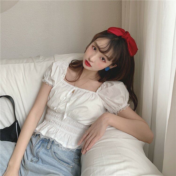 ホワイト 白スリーブ 袖ブラウス レディーススタンダードリボンレースショート ショート丈 ミニ ミニ丈シャツ レトロ トップス スクウェア スクエア 女性 レディース ガーリー71186165999 | nice import1