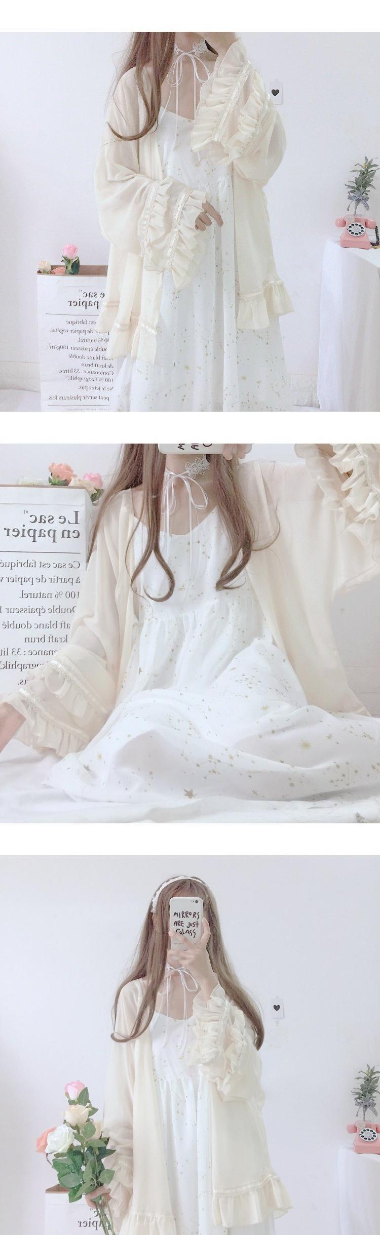 ドレス ワンピースラッフル フリルシフォンレースカーディガン 上着セット かわいい 可愛い ガーリー 大人可愛い 大人かわいい フェミニン 大人ガーリー 女性 レディース ガーリー83492829853 | nice import1