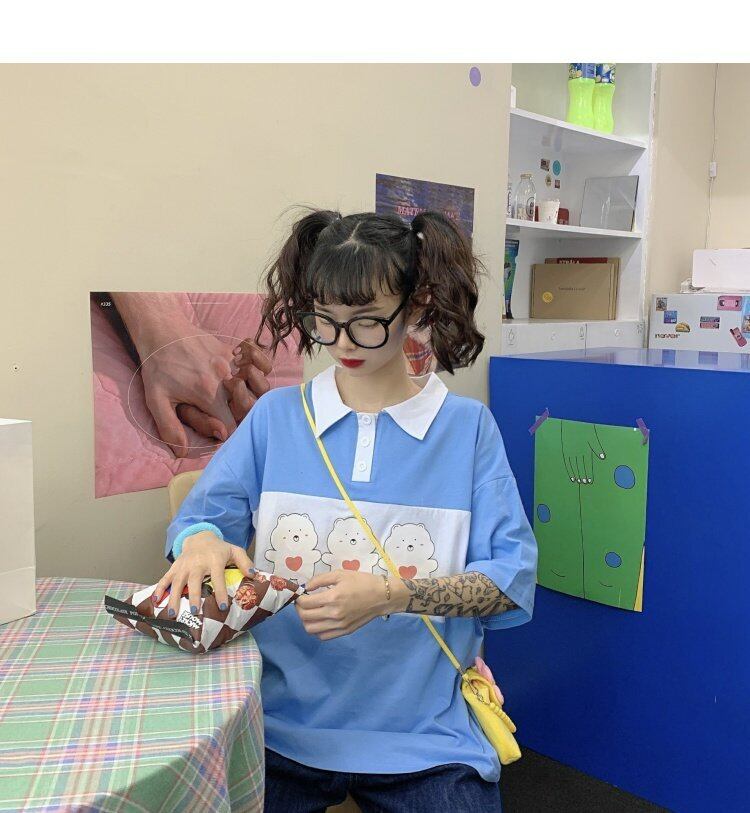 カラープリント柄Tシャツ ブルー 青トップス ショート ショート丈 ミニ ミニ丈 かわいい 可愛い ガーリー 大人可愛い 大人かわいい フェミニン 大人ガーリー 女性 レディース ガーリー68076117647 | nice import1