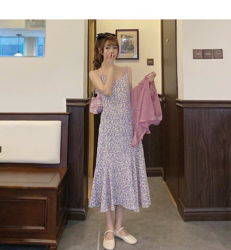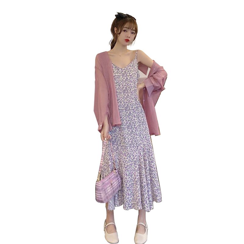 スカート スタンダードロング マキシ ロング丈 マキシ丈花柄 お花 フラワードレス ワンピースウエスト薄手 マキシロング丈 レトロ パープル 女性 レディース ガーリー84987198571 | nice import1
