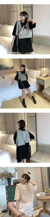 色:黒いTシャツ,白いTシャツ,グリーンワンピースベスト,アプリコットワンピースベスト