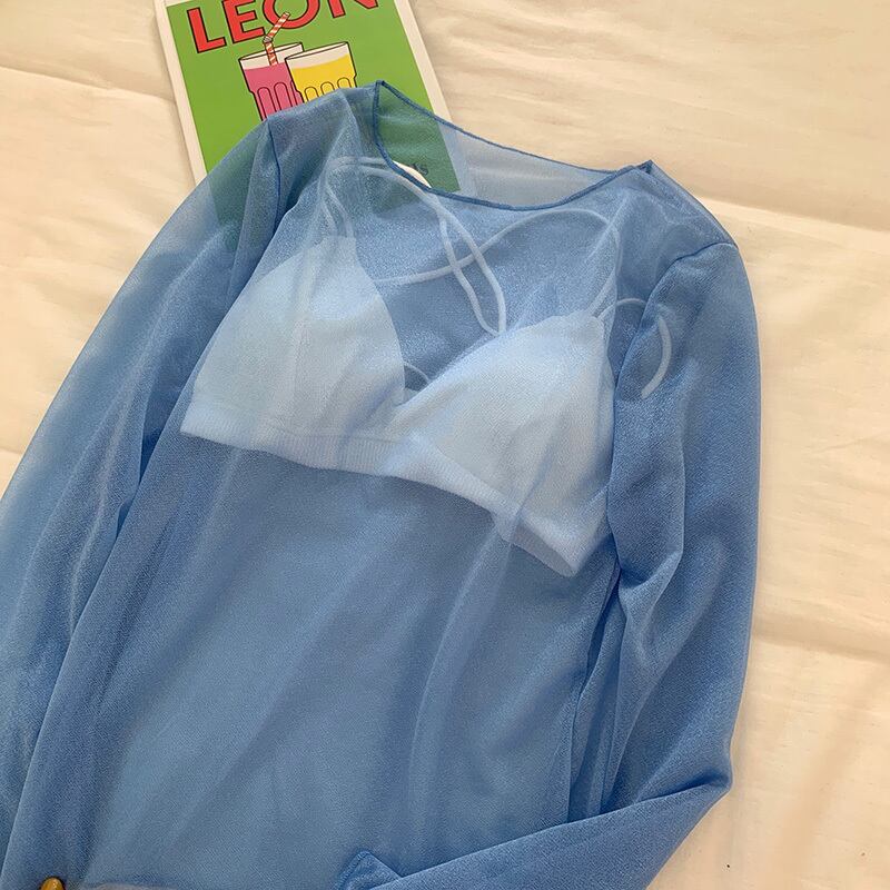 薄手ブルー 青シフォンシャツ レディースルーズ長袖 長そでスリーブ 袖トップス ロング マキシロング丈 マキシ丈 かわいい 可愛い ガーリー 大人可愛い 大人かわいい フェミニン 大人ガーリー 女性 レディース ガーリー86936031007 | nice import1