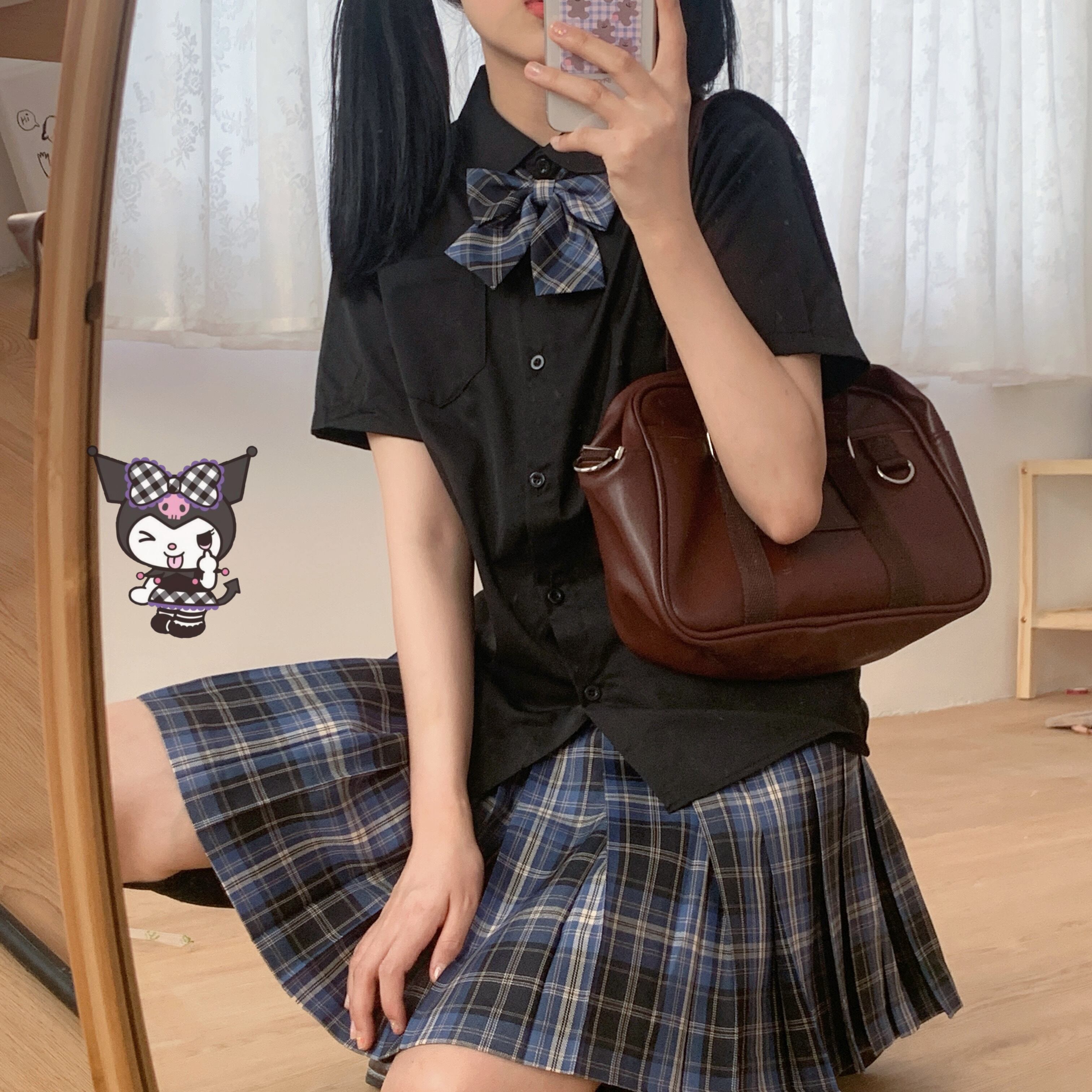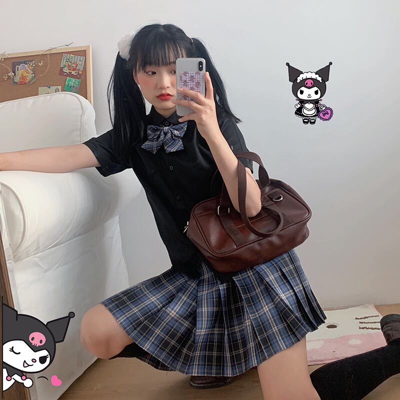 ダークスタイル半袖 半そでスリーブ 袖シャツ リボンハイウエストウエスト格子柄 チェックプリーツスカート ハイウェスト ショート ショート丈 ミニ ミニ丈 ハーフスリーブ 女性 レディース ゆめかわ45424039402 | nice import1