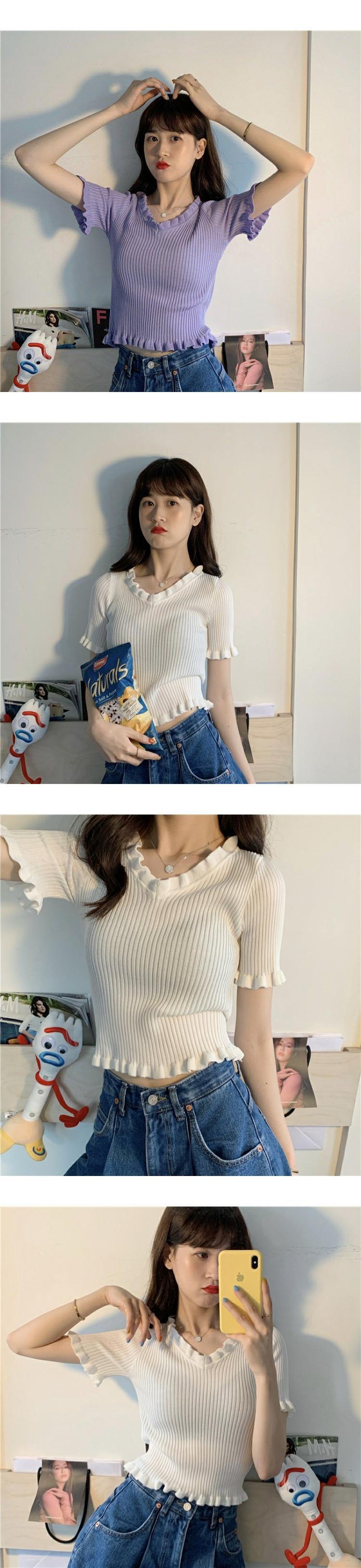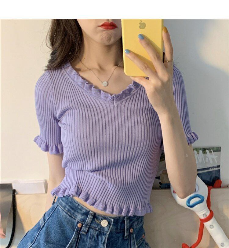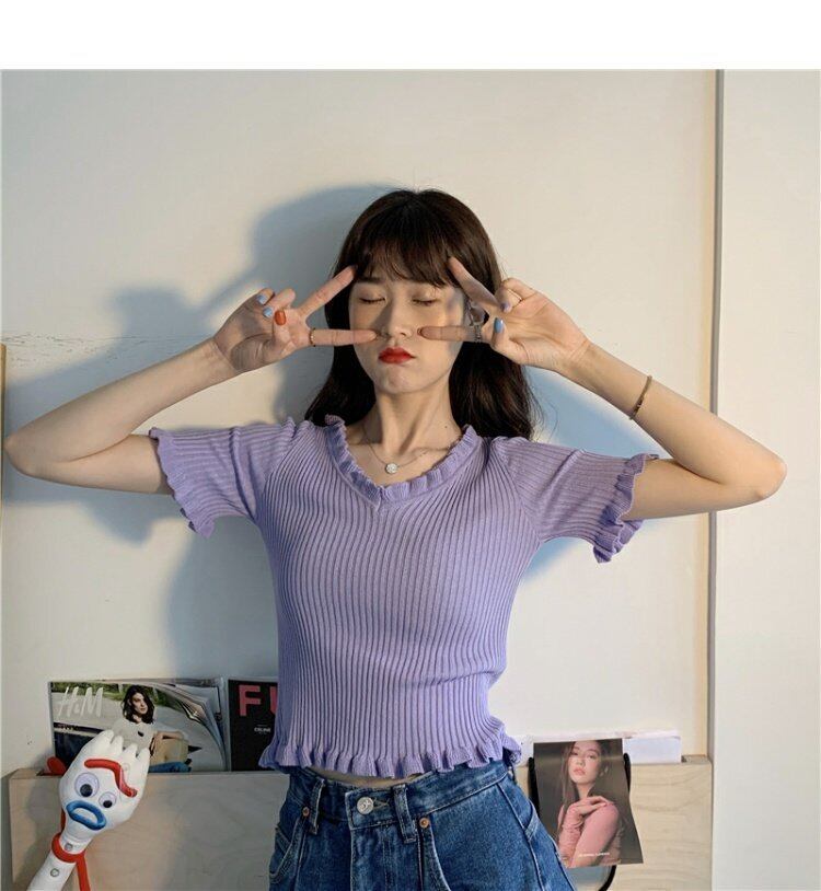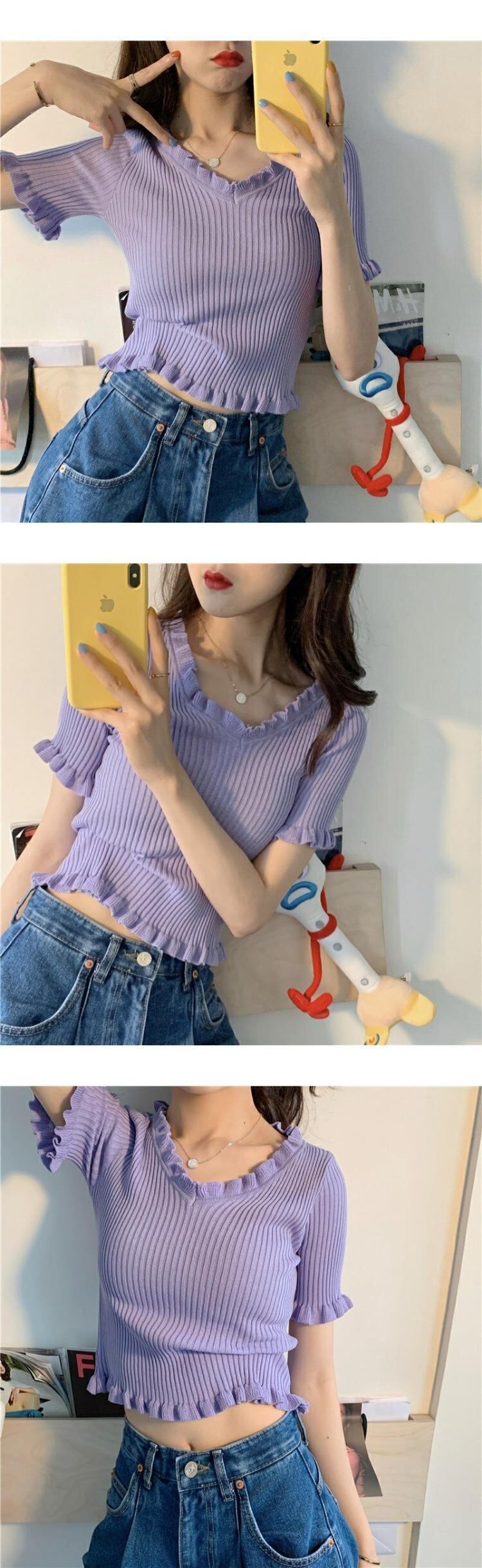スリーブ 袖ブラウス レディーススタイルショート ショート丈 ミニ ミニ丈ニット セータースタンダードTシャツ レトロ トップス パープル 女性 レディース ガーリー73340520697 | nice import1