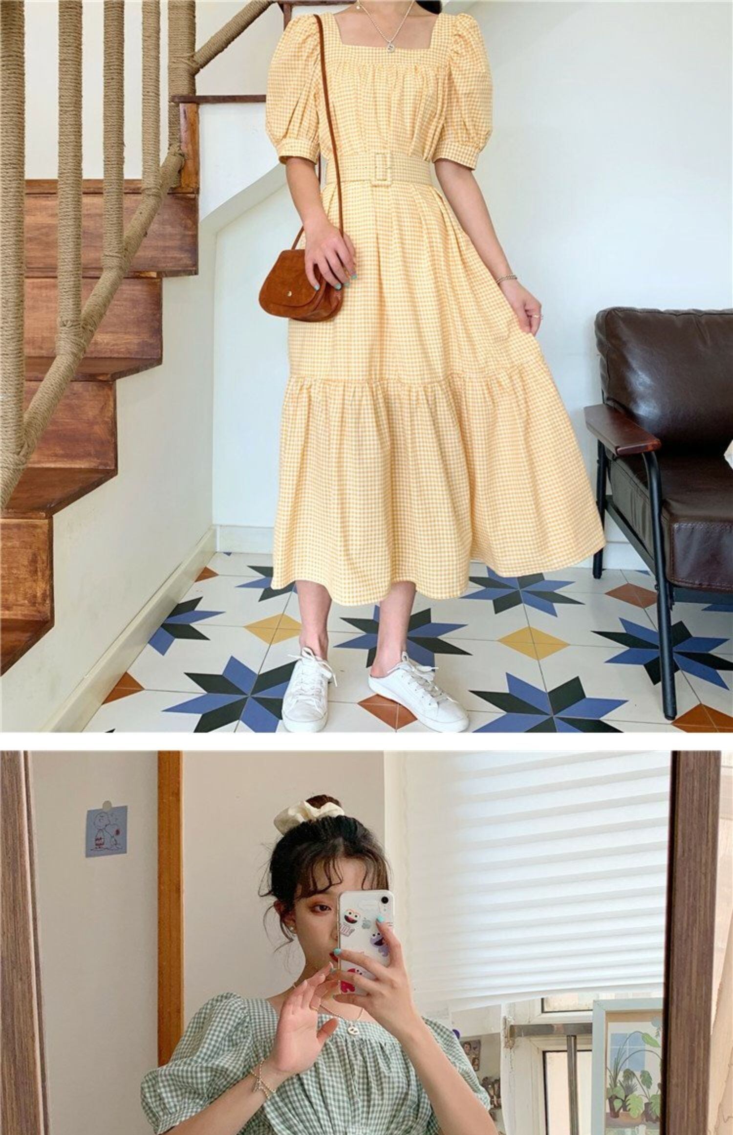 ウエスト格子柄 チェックドレス ワンピースルーズスリーブ 袖ロング マキシ ロング丈 マキシ丈スカート マキシロング丈 かわいい 可愛い ガーリー 大人可愛い 大人かわいい フェミニン 大人ガーリー スクウェア スクエア 女性 レディース ガーリー97659182812 | nice import1