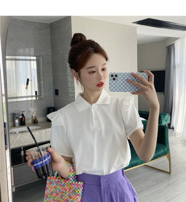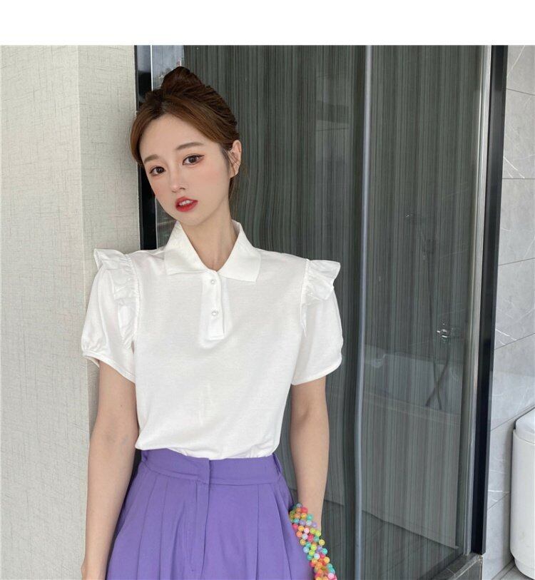 ホワイト 白トップス ドレス ワンピースルーズ薄手パールバックルシャツ Tシャツ ショート ショート丈 ミニ ミニ丈 真珠 女性 レディース ガーリー16495218023 | nice import1