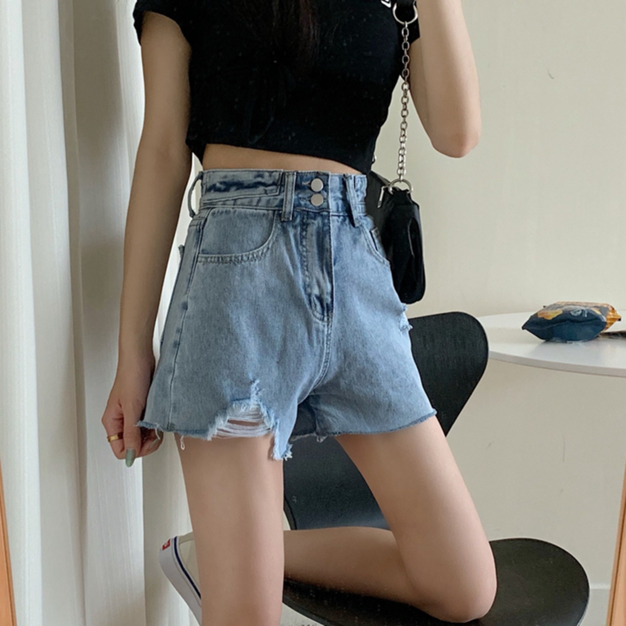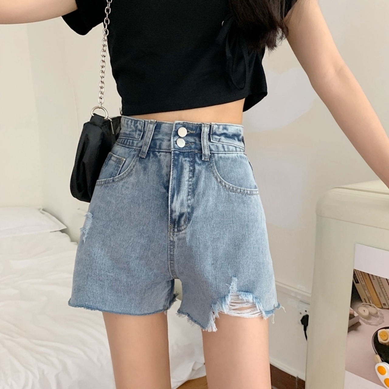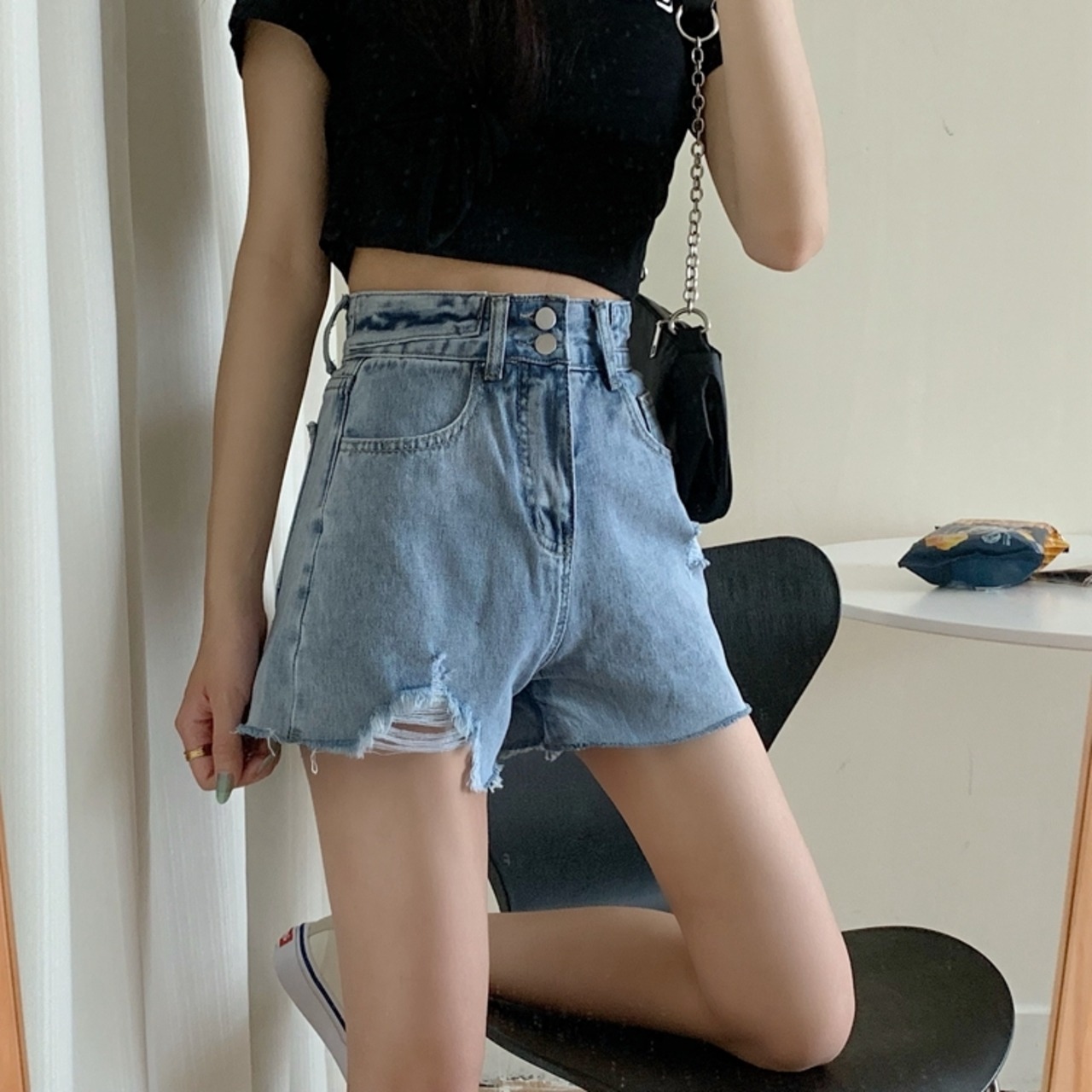 ショーツ レディースハイウエストウエストレッド 赤ジーンズ デニムパンツ ハイウェスト ショート ショート丈 ミニ ミニ丈 ブルマー 女性 レディース ゆめかわ88680829763 | nice import1