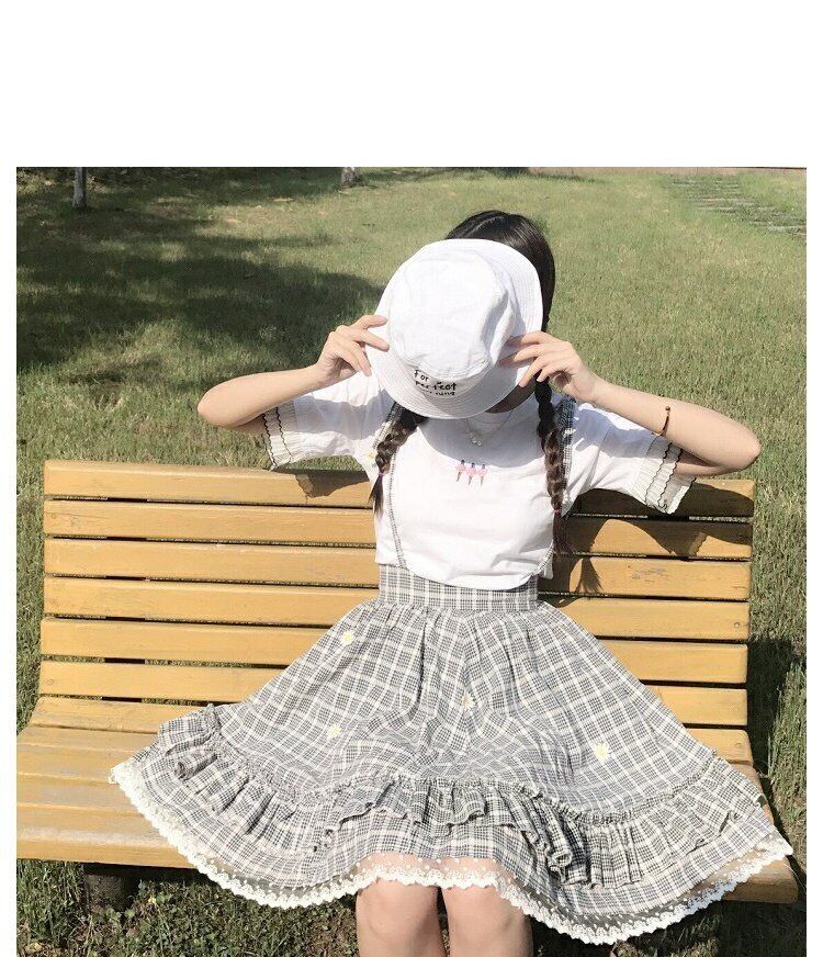 スカート 格子柄 チェックハイウエストウエスト半袖 半そでスリーブ 袖Tシャツ ハイウェスト ショート ショート丈 ミニ ミニ丈 ハーフスリーブ 女性 レディース ガーリー67989676275 | nice import1