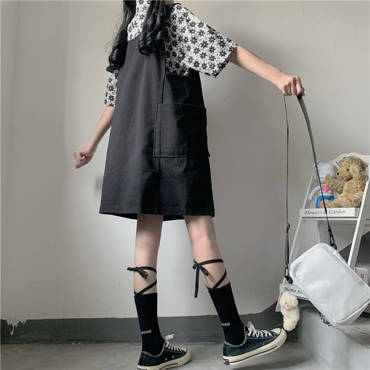 色:花柄シャツワンピース,ブラックストラップスカートワンピース