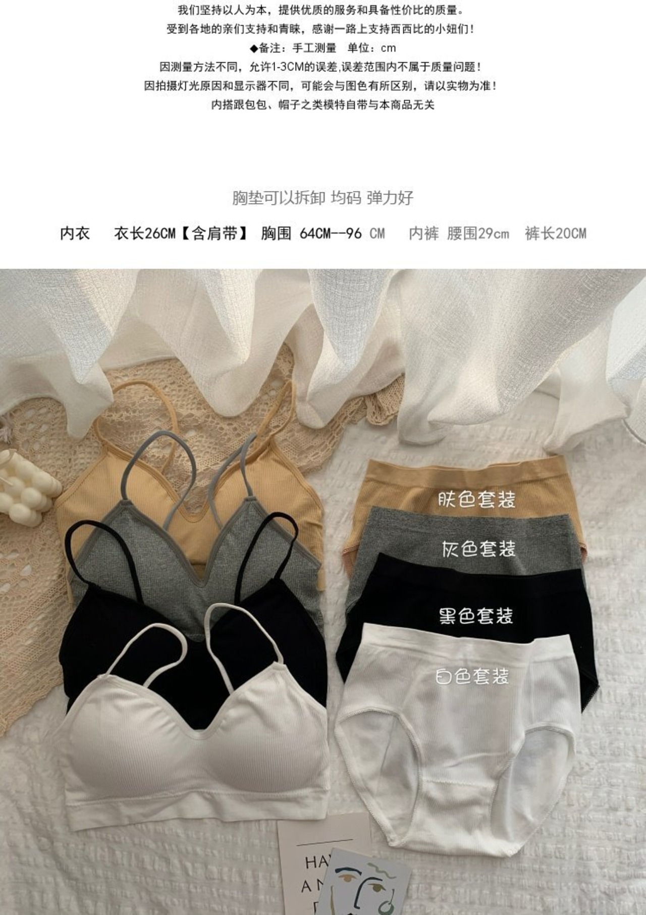 色:黒いシングルピース,黒いスーツ,白いシングルピース,白いスーツ,グレーのワンピース,グレーのスーツ,顔色シングルピース,肌の色のスーツ